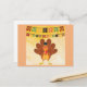 Deseje um feliz Dia de Ação de Graças este ano com este lindo cartão postal com um peru de desenho segurando uma abóbora!