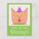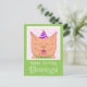 Cartão Postal Lindo Gato Laranja Com Chapéu de Aniversário Bênçã
