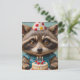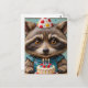 Cartão Postal Lindo Guaxinim Com um Bolo de Aniversário