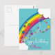 Este design de cartão postal é impressionante e personalizado, apresentando um arco-íris colorido, estrelas cintilantes e nuvens fofas com amplo espaço para sua mensagem personalizada. Você tem a liberdade de personalizar o texto ao seu gosto, tornando-o exclusivamente seu.