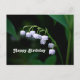 Cartão Postal Lindo Lírio do Vale Floral de Aniversário Branco