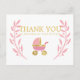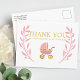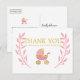 Cartão Postal Lindo Obrigado Carruagem de Bebê Rosa Dourado Chás