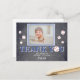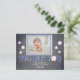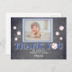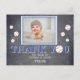 Cartão de agradecimento de aniversário moderno e fofo de beisebol para foto em quadro-negro para crianças. Cartão de agradecimento para crianças - menina e menino, especialmente para o 1º e 2º aniversário. O design tem uma foto da criança (insira a sua), e bolas de beisebol pequenas e grandes. O fundo é um quadro-negro cinza moderno. Personalize o cartão com sua foto e nome. Você também pode alterar o texto de agradecimento e escrever o seu próprio. O texto é em cor branca moderna e trendy.