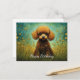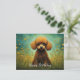 Cartão Postal Lindo Poodle Florido Prado Feliz Aniversário