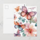 Borboletas e flores em aquarela decoram este cartão postal de saudação personalizado com uma mensagem de aniversário. Personalize-o adicionando seu próprio texto na frente ou dentro do cartão. Disponível também como cartões de saudação, cartões postais e downloads digitais. Envie-me uma mensagem se você gostaria de algo personalizado.