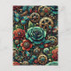 Mantenha contato com este belo cartão postal. Bonito tema floral steampunk com engrenagens metálicas, rosas e joias.
