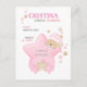 Design de estatísticas de nascimento de menina bebê fofo e gentil com estrelas e pontos em rosa, bege e creme.