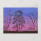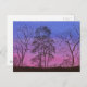 Uma pintura de aquarela ACEO de uma antiga fila de cerca e árvores de outono silhuetou contra os pínus e os azuis profundos da noite, o céu iluminado.