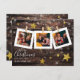Este cartão-postal é ideal para qualquer família que pretenda enviar algum amor de Natal aos amigos e à família. Este design apresenta um fundo de madeira rústico e escuro com 3 fotos pegadas em uma linha com estrelas cortadas em folha de ouro e uma cobertura de floco de neve. No canto inferior esquerdo, lê-se "Feliz Natal com amor" e o nome da sua família e o ano numa mistura de letras feitas à mão. Personalize o design clicando no botão "personalizar" e digite seus detalhes e carregue suas próprias imagens!