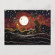 Cartão Postal Linocut da Sereia Gazando na Lua na Onda