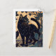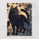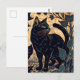 Cartão Postal Linocut de um Gato Preto Entre Plantas com Fundo A