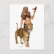 Esta design apresenta uma imagem fantástica de uma bela rainha guerreira antiga caminhando com seus companheiros, uma leoa ouro e um pequeno pássaro vermelho.