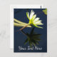 Uma única flor de lírio de água loto branco e folhas de lírio verdes na piscina de água preta nesta fotografia tirada nos Jardins de Longwood.