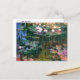 Um cartão postal de arte com a pintura paisagística, Water Lily (1917), de Claude Monet (1840-1926). Uma lagoa de lírio com almofadas de lírios de flores brancas e cor-de-rosa refletindo sobre a água, inspirada nos seus próprios jardins hídricos em Giverny, França.