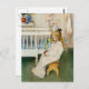 A garotinha no berçário se posou na camisola. Retrato retrata ela segurando uma tulipa amarela