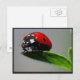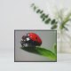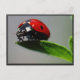 Uma fotografia de uma joaninha vermelha que repousa sobre uma folha.