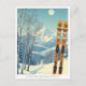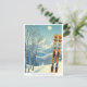 Olá das montanhas de neve de Livigno Lombardia Itália, na Europa! Esperamos que esteja tendo umas ótimas férias de esqui. Este cartão-postal apresenta uma linda paisagem de montanha de cinzas azuis com conselhos de esqui retrorados em um padrão tribal laranja. Todas as frases de texto podem ser personalizadas para você!
