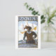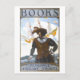 Este postal é uma reprodução de um poster de alfabetização da biblioteca antiga mostrando um explorador e lendo: "Livros: Romance, História, Viagem."