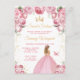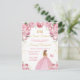 Este convite de aniversário de dezesseis anos elegante e glamoroso apresenta uma bela princesa com cabelos loiros em um vestido de baile rosa corado. O texto combina caligrafia manuscrita e fontes modernas sem serifa para um visual sofisticado e elegante. Os arranjos florais, borboleta e confetes dourados criam a combinação perfeita de rústico e chique. Gráficos por www.etsy.com/uk/shop/SunflowerDayLove
