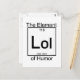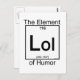 A ciência isolou um novo químico na mesa periódica - o elemento do humor, abreviado de LOL. Você o encontra diariamente quando escreve mensagens e jogos - é o que faz você rir alto! Química das gírias para as massas - um presente engraçado perfeito para qualquer um!