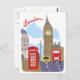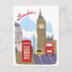 Ilustração de Londres com uma cabina ou caixa vermelha clássica do Reino Unido, um ônibus de dois andares, e Big Ben, o apelido do Excelente do relógio na extremidade norte do Palácio de Westminster. Artista: Giovana Medeiros