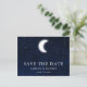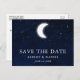 Célestial Salvar o cartão-postal de lançamento do noivado de Data. Céu azul de água com estrelas e a lua.