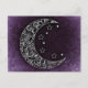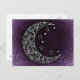 Cartão Postal Lua e estrelas do Crescente Floral ouro em Roxo