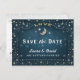 Cartão postal Lua & Estrelas Azul Turquesa Dourado & Branco Salvar Data