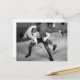 Este postal apresenta uma fotografia antiga de dois lutadores bonitos e musculosos treinando na academia.