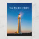 Mande uma nota em estilo com este belo cartão postal náutico. Este design apresenta um lindo farol branco nas horas de luz do crepúsculo com estrelas visíveis no escurecimento do céu azul. O farol na praia emite um brilho quente a leste para guiar os navios para casa em segurança. O verso da placa é um azul-claro padrão. Há um ponto no topo para Personalizar a placa com sua própria mensagem em impressão branco. Basta pressionar o botão Personalizar para editar ou excluir o texto ou pressionar o botão Personalizar para alterar a fonte, a cor do texto ou a cor do lado inverso, se desejar. Faz um presente ou decoração de excelente! Excelente para farol, navios, amantes de praia e mar e fãs de arte náutica ou oceânica. Este design pode ser transferido para qualquer item do mercado Zazzle.