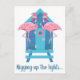 Cartão Postal Luzes de Natal de Flamingo Engraçado Cabana de Pra