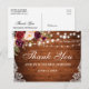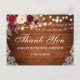 Cartão de Agradecimento de Luzes de Corda de Madeira Rústica com Lace e Floral de Borgonha para Casamento