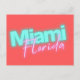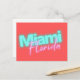 Design tipográfico moderno e colorido apresenta "Miami Flórida" em texto aqua e néon cor-de-rosa sobre fundo de salmão/coral