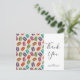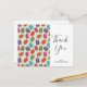 Um cartão postal de agradecimento de festa de aniversário com um lindo padrão de macarons em muitas cores diferentes com um padrão de bolinhas fraco por trás.