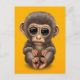 Cartão Postal Macaco bebê bonito e curioso em amarelo