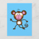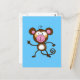 Cartão Postal Macaco de animação em branco no cartão-postal azul