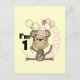 Uma macaca vestindo uma festa rosa cercada por balões pintados e cor-de-rosa e um texto que diz "Eu sou 1" em um macaco no primeiro aniversário de camisetas, fusíveis, cartas, sacos de tote e muito mais.
