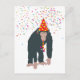 Uma ilustração fofa de um macaco se divertindo e se divertindo! Chimpanzé usando um chapéu de festa e soprando uma corneta de festa com confetes caindo sobre ele. Que comecem as celebrações! Perfeito para quem ama ilustrações engraçadas de animais. Ideal como presente de aniversário, decoração de berçário, arte para quarto de crianças, decoração de casa, presente de Natal ou presente para qualquer outra ocasião especial.
