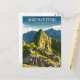 Jornada ao coração do Império Inca com este incrível cartão postal de viagem Machu Picchu Peru! Esta ilustração gráfica cativante apresenta as icônicas ruínas Incas aninhadas nas montanhas dos Andes. O design captura a escala inspiradora desta antiga cidade, posta contra os dramáticos picos peruanos.