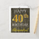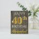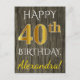 Este simples e personalizado design de cartão postal de aniversário apresenta a mensagem "FELIZ ANIVERSÁRIO DE 40 ANOS", com o "40" tendo uma aparência semelhante a ouro. A frente também apresenta um nome personalizado e um fundo com aparência de madeira. O verso apresenta uma mensagem de aniversário personalizada, juntamente com o endereço personalizável do destinatário do cartão postal de aniversário. Poderia ser dado a alguém que está celebrando seu aniversário de 40 anos.