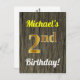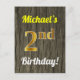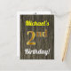 Este simples, personalizado, design de cartão postal com tema de aniversário apresenta uma mensagem personalizável como "o segundo aniversário de Michael!" na frente, onde o nome pode ser mudado, e com o "segundo" a ter uma aparência falsa de ouro. A frente também apresenta uma aparência falsa de madeira. A parte traseira apresenta uma mensagem personalizada e um endereço de destinatário personalizado. A mensagem e/ou o endereço do destinatário podem ser deixados em vazio se forem preenchidos à mão. Pode ser enviado como uma saudação a alguém que comemora o seu segundo aniversário, ou talvez postais como estes possam ser usados como convites para convidar convidados para uma festa que comemora o segundo aniversário de alguém. [~Z0000106]