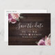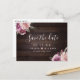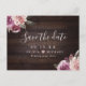 Design floral botânico de cor aquosa em roxo malvado, amora, rosa poeirado e cor de pêssego em fundo de madeira de celeiro escuro, com roteiro e texto modernos, elegante e na moda, cartões salve a data excelentes para o casamento botânico no outono e no inverno. Veja todas as peças correspondentes na coleção.