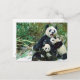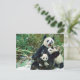 Esta linda Mãe Panda e os seus dois filhotes sentados na floresta na neve enquanto a neve cai à sua volta