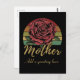 Envie este cartão postal estilo vintage angustiado com sua própria mensagem personalizada na frente e no verso. Apresenta uma rosa vermelha clássica em frente a um fundo de pôr do sol retrô angustiado e a palavra "Mãe" em fonte dourada.