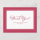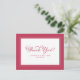 O design do cartão de agradecimento de casamento vermelho magenta e branco apresenta uma bela moldura chique em magenta que inclui uma elegante borda branca delicada. A caligrafia e o script são vermelhos correspondentes em um fundo branco. Personalize com seu nome e data de casamento. Um modelo moderno para data e ano complementa o design exclusivo de caligrafia. [OBSERVAÇÃO: A exibição da data do casamento, como mostrado, usa a barra ou linha vertical que pode ser encontrada acima da tecla \ no teclado ou no seu dispositivo inteligente com caracteres especiais. Você também pode personalizar com qualquer outro caractere de sua escolha.] O verso do cartão é branco e fornece espaço para sua nota manuscrita personalizada para adicionar aquele toque muito especial que sua família e amigos apreciarão!