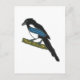 Drawing of a Magpie with the distinctive blue flash of color, and the white markings - perched on a branch. A clever bird with much folklore referring to it. A fun design for Magpie fans.