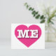 Este cartão-postal apresenta um coração cor-de-rosa-quente vibrante contendo as letras maiúsculas, brancas e em negrito ME, a abreviação oficial para o estado do Maine, o estado do pinheiro. O reverso do cartão postal é vazio, aguardando seu texto personalizado ou sentimentos escritos à mão.