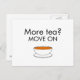 Mais chá? MOVE ON - com uma xícara de chá ( © Mira) Forth em uma série "Mais chá?", composta de pedaços de uma conversa imaginada com uma senhora britânica de classe alta sobre o assunto "A vida dói." A primeira peça da série foi "A vida dói. Mais chá?" A segunda peça foi "A vida requer determinação. Mais chá?" A terceira peça foi "Certo. . . Mais chá?" Esta leva as coisas em uma direção diferente: a senhora aristocrática sedada perder sua paciência. Para mim, estas declarações de "Mais chá?" fariam presentes divertidos para alguém que precisa de um pouco de inspiração e motivação para fazer mais chá e seguir em frente:) Eu também as vejo como presentes divertidos para qualquer um que aprecie a importância do chá na vida de alguém.