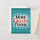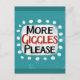 "Mais rabiscos por favor" é um design de texto divertido com uma forma de sotaque branca cercado por pontos brancos texturizados.