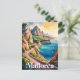 Descubra o encanto artístico do litoral de Maiorca com este cartão-postal maravilhosamente desenhado. Mostrando cores vibrantes e formas dinâmicas inspiradas pelas praias atordoantes da ilha, águas turquesas e penhascos robustos, esta peça captura a essência da beleza mediterrânica. Perfeito para amantes de arte, viajantes e colecionadores, é um tributo eterno à atração cênica de Maiorca.